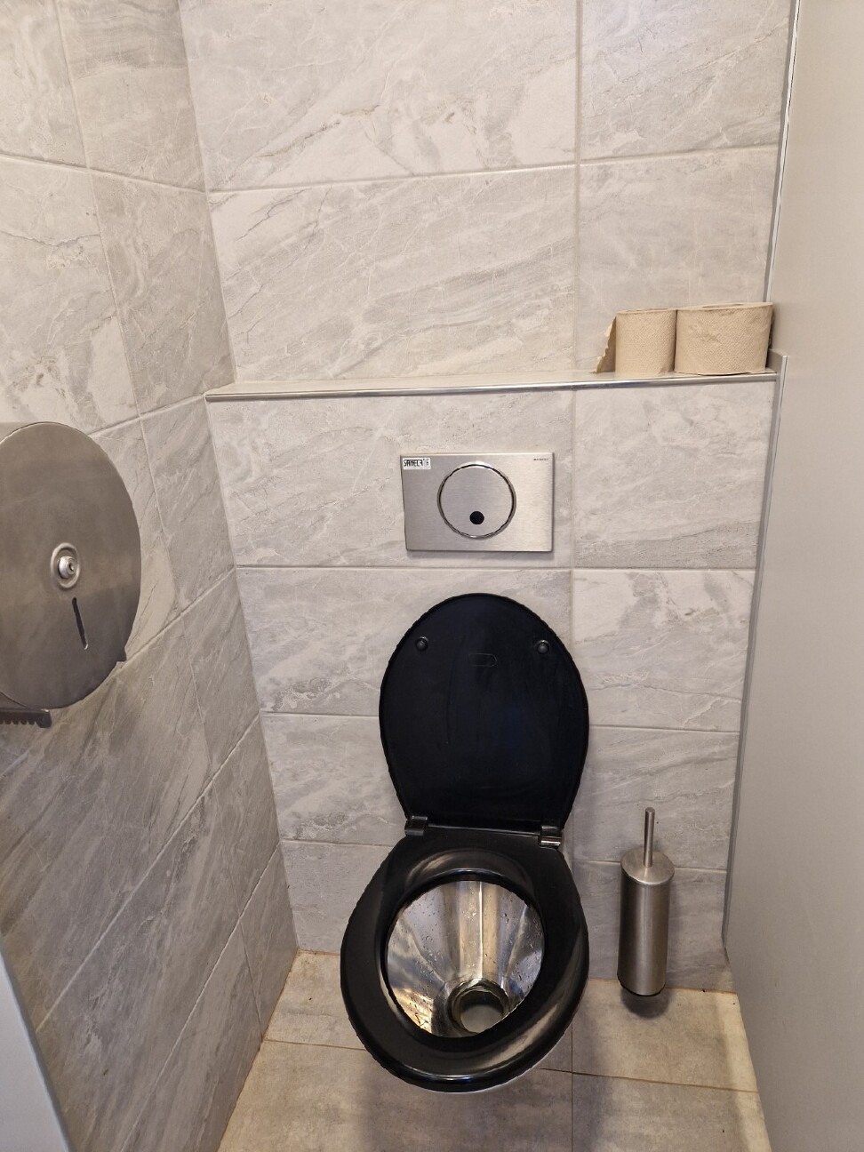 - AUZ 01 INV.CS závěsný nerezový klozet pro tělesně postižené, včetně černého plastového sedátka